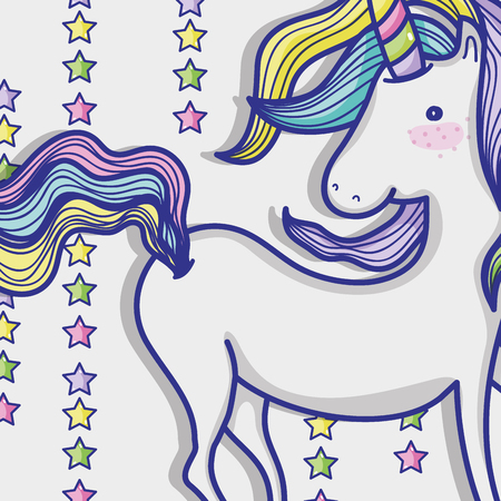 魔法と幻想的なユニコーンかわいい漫画のアイコンベクトルイラストグラフィックデザインマジックとファンタジー女の子の世界かわいいおとぎ話のイラスト素材 ベクタ Image