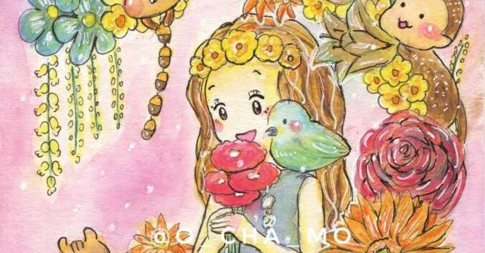 華やかなお花と女の子と動物たちの水彩イラスト おちゃも イラストレーターお仕事募集中 Note