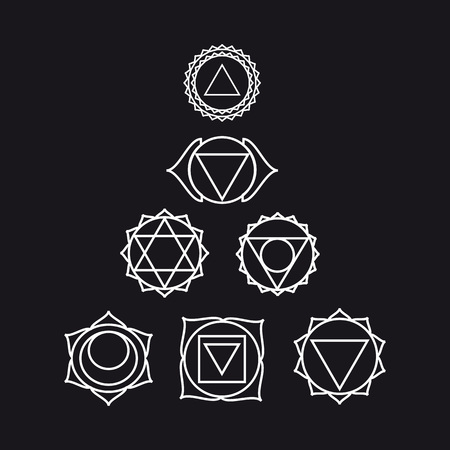 人体エネルギー イラスト 黒と白の色の 7 つのシンボル のイラスト素材 ベクタ Image