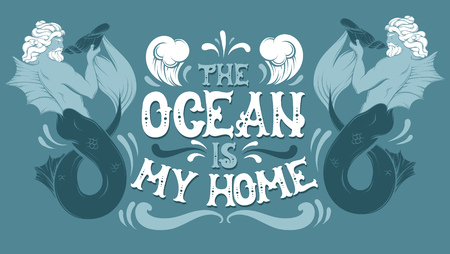 海は私の故郷です 妖精の手書きフォントとトリトンのイラスト を持つベクトル引用符のタイポグラフィの背景 Tシャツ用ポストカードバナーポスタープリント用テンプレート のイラスト素材 ベクタ Image